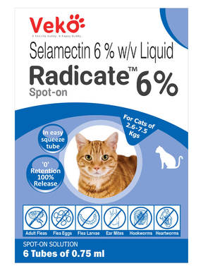 Radicate for Cats is a safe and simple way to protect your pet from a range of common parasites. It prevents heartworm disease while treating and controlling fleas (including flea eggs and larvae) and ear mites, hookworms and roundworms. This effective medication is applied to the skin of your pet once a month.