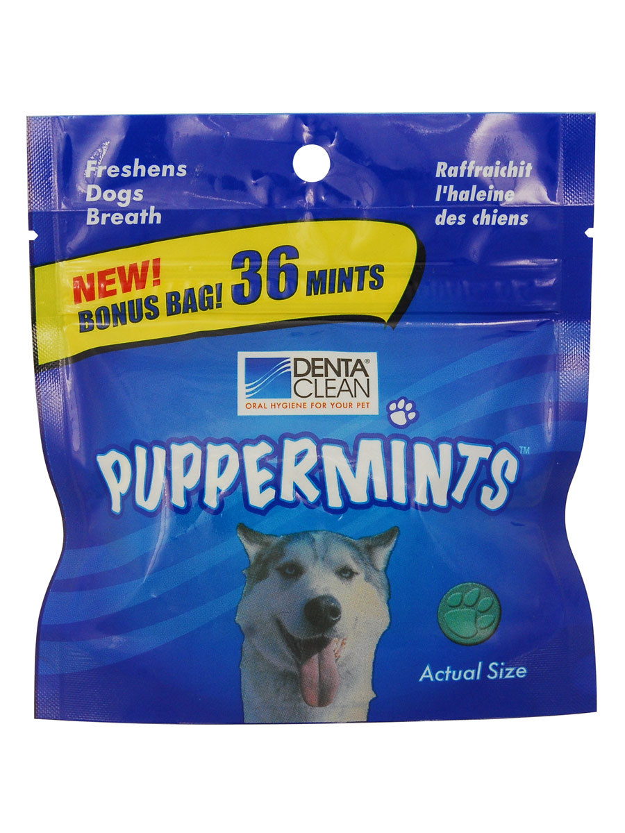 Give your pet a breath of fresh air. Denta Clean Puppermints help keep your dog?s breath clean and fresh anytime, anywhere. Though they are small enough to carry in your pocket, they are also effective enough to ensure good breath. Just treat your dog with a mint or two and it will have fresh breath in an instant.
