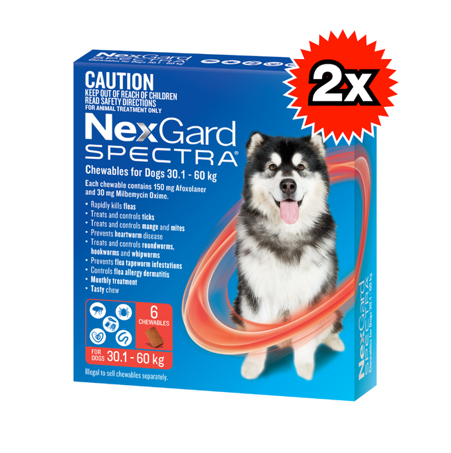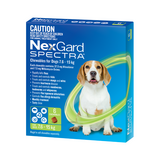 NexGard Spectra for Dogs is a comprehensive, all-in-one solution designed to protect your dog from a wide range of parasites. This chewable tablet effectively targets fleas, ticks, heartworm, and intestinal worms, providing full-body protection. With its beef-flavored chew, NexGard Spectra is not only highly palatable but also easy to administer, making it a convenient option for pet owners.